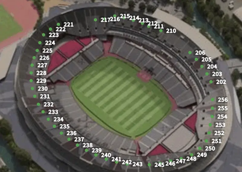 A short scan reveals thousands of unsold tickets: View the e-ticketing image below from Sunday afternoon. Each green light represents a block with available tickets. A closer look reveals several blocks with hundreds of unfilled seats.