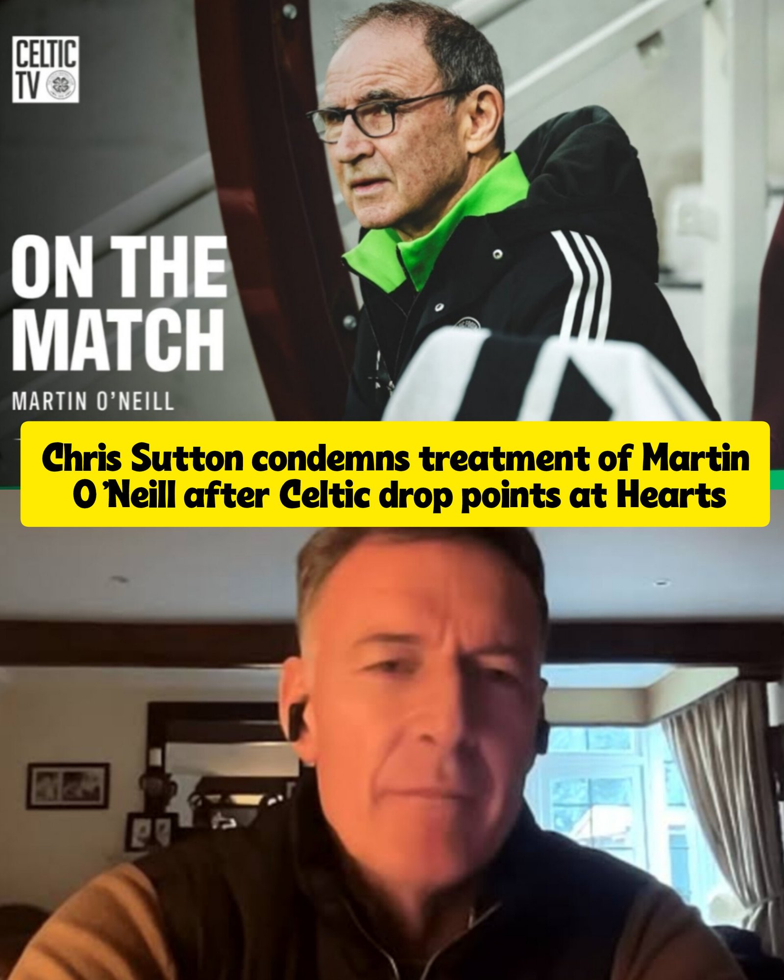 Chris Sutton has delivered a furious reaction following Celtic’s dramatic 2–2 draw with Hearts, turning his frustration not on the players or the manager, but on how Martin O’Neill is being treated behind the scenes as the Premiership title race heats up.
