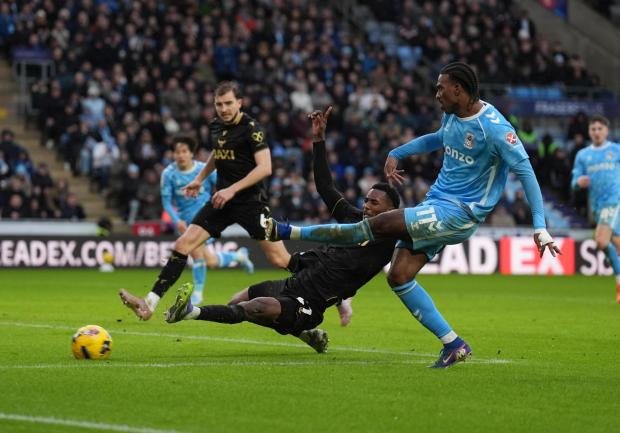 Coventry City’s Haji Wright reacts following a missed opportunity the Sky Bet Championship match at the Coventry Building Society Arena (Image: Joe Giddens/PA Wire)