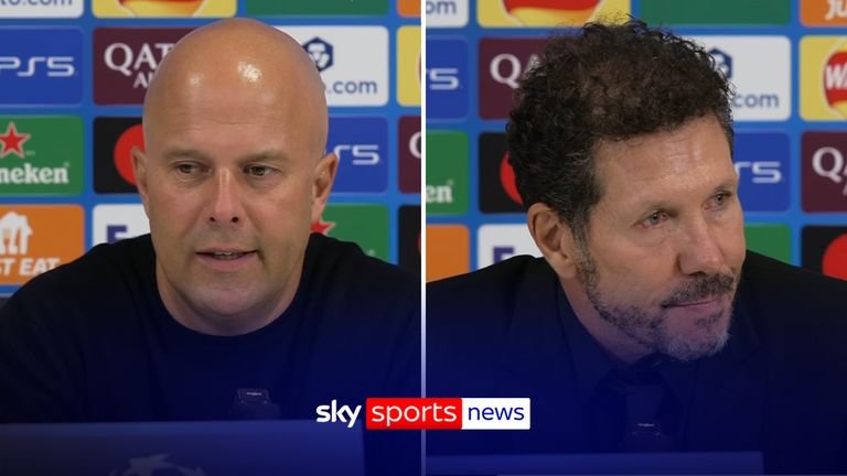 Liverpool boss Arne Slot reacts to Liverpool’s late win while Atletico Madrid manager Diego Simeone reflects on his red card at Anfield.