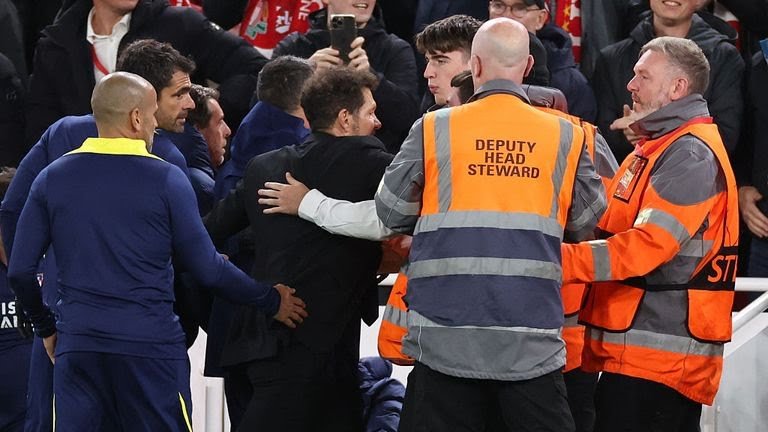 Virgil van Dijk’s late winner for Liverpool, after Atletico had come back from two goals down to tie the game, provoked a brawl on the touchline, resulting in Simeone getting into a confrontation with fans behind his dugout.