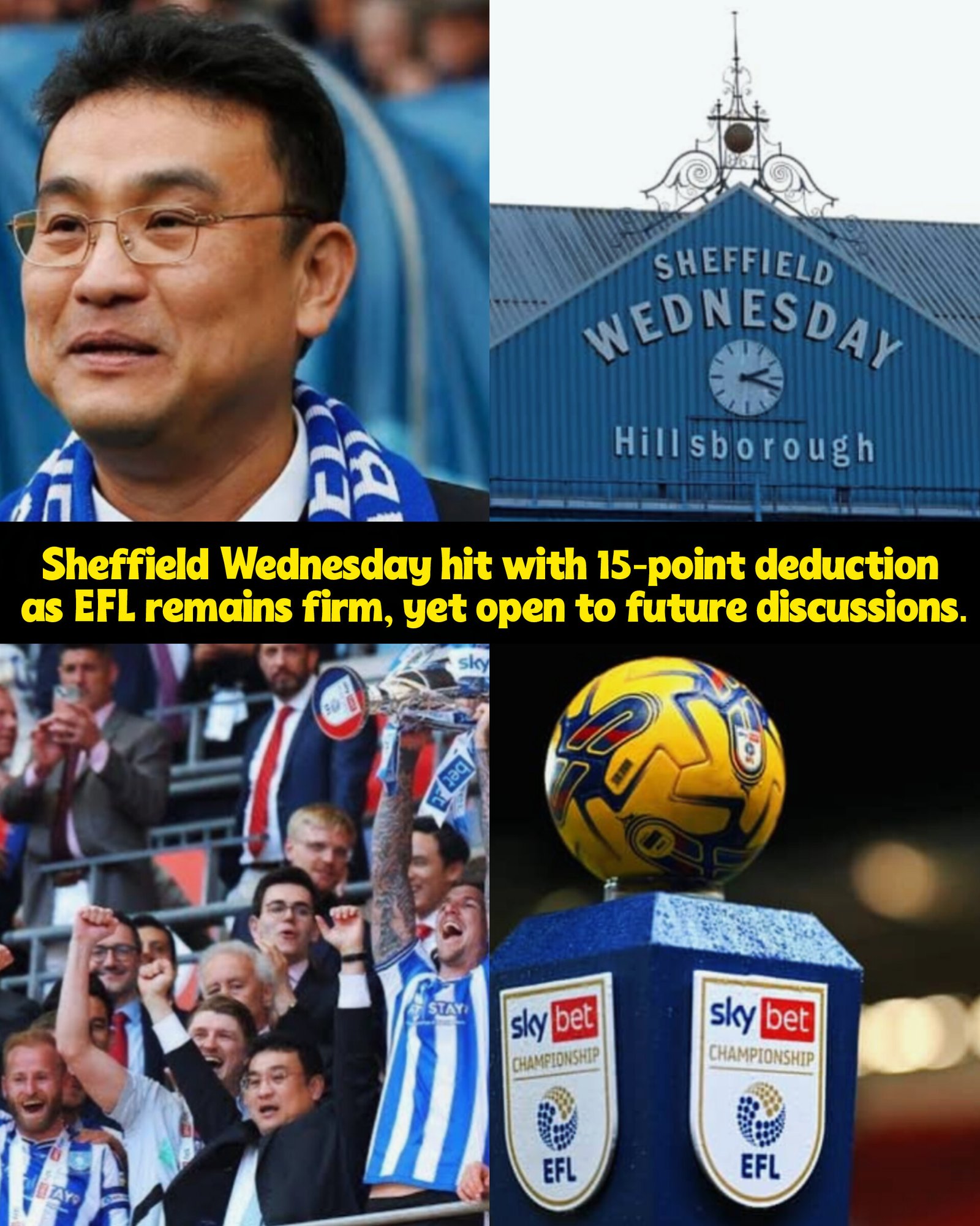 EFL maintains stance on 15-point deduction for Sheffield Wednesday but is willing to discuss future options.