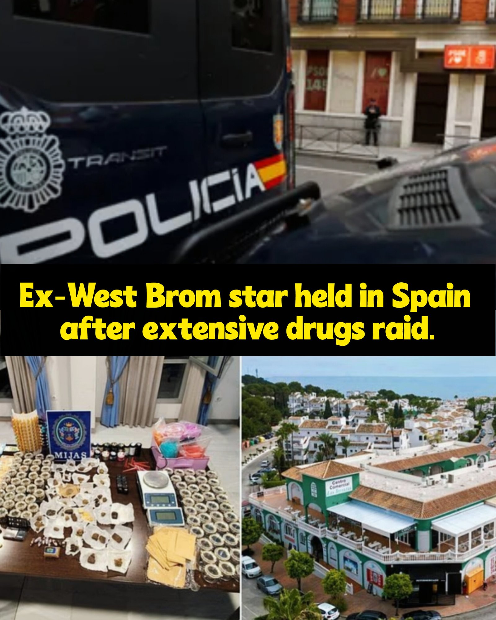 Ex-West Brom footballer arrested in Spain after large-scale drugs operation.