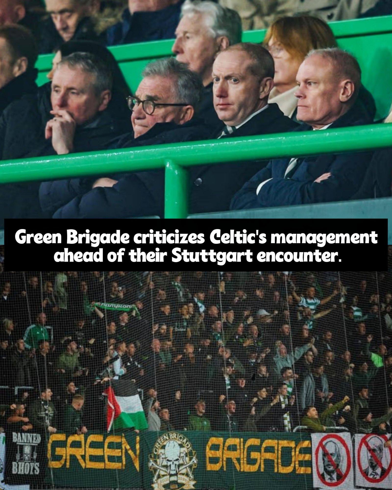Green Brigade blasts the Celtic board ahead of the Stuttgart fixture.