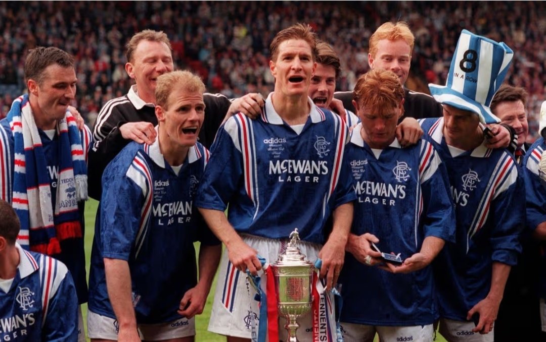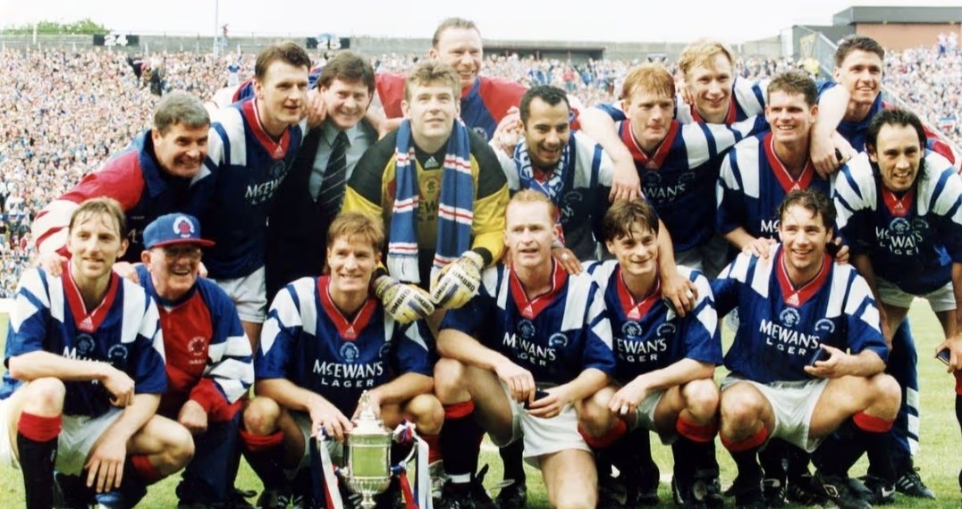 The Rangers players celebrate winning the 1992 Scottish Cup