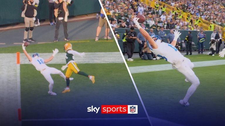 Isaac TeSlaa makes an incredible catch in the match between Detroit Lions and Green Bay Packers