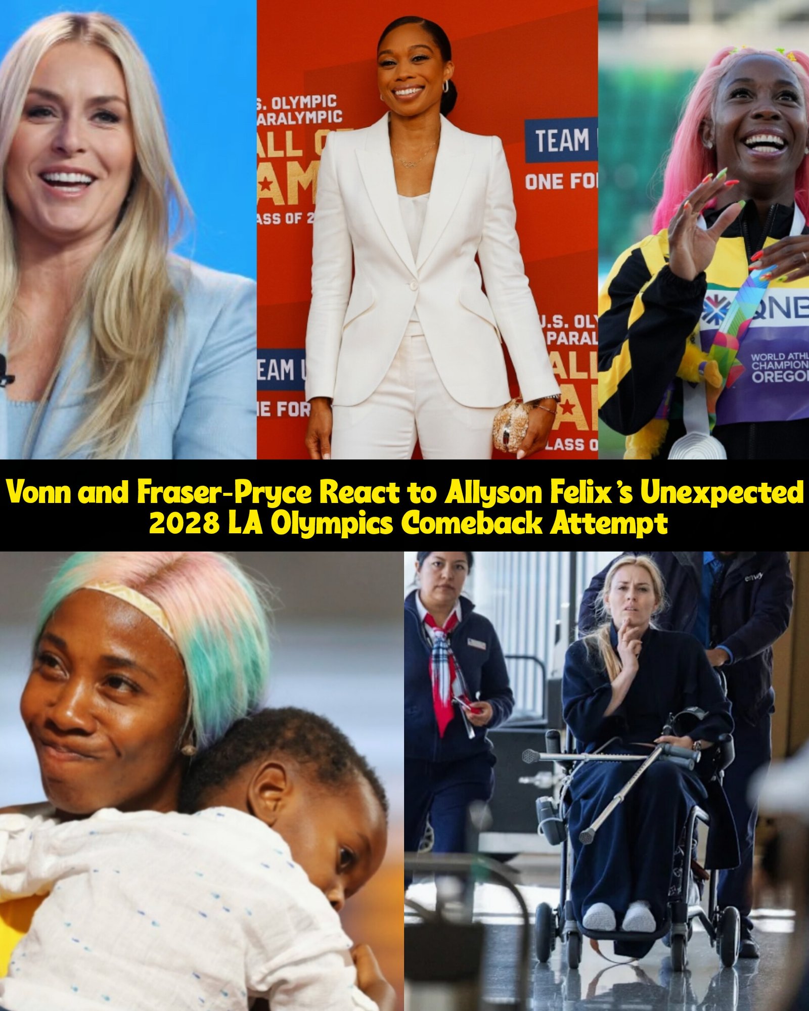 Lindsey Vonn and Shelly-Ann Fraser-Pryce Comment on Allyson Felix’s Surprising 2028 Los Angeles Olympics Return Bid