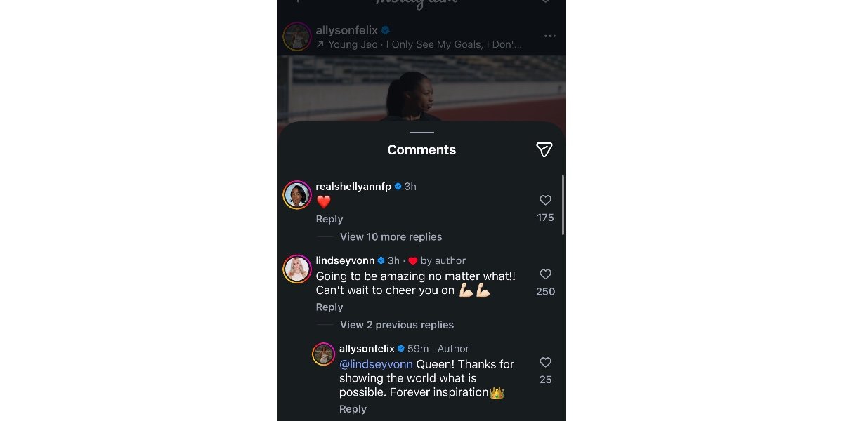 Fraser-Pryce and Vonn’s comment – Source: (Image via Instagram/ @allysonfelix)