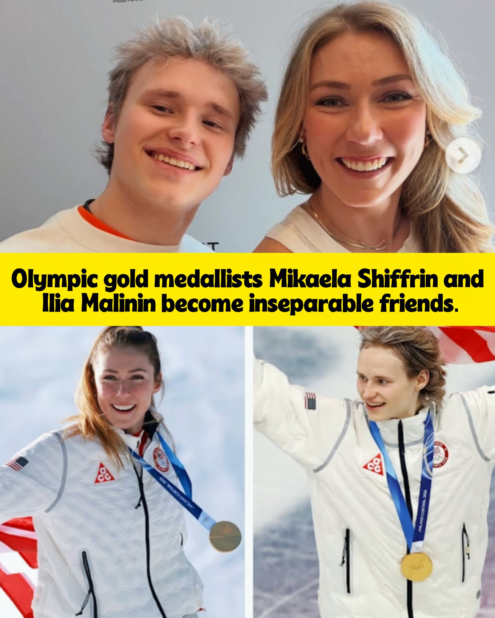 Mikaela Shiffrin and Ilia Malinin, Olympic gold winners, become “besties.”