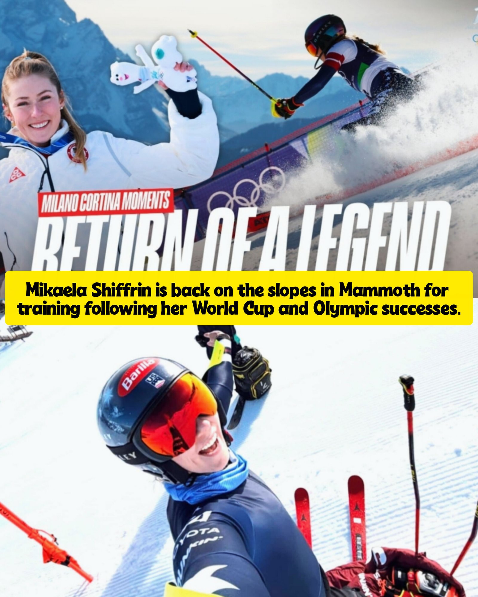 Mikaela Shiffrin has already resumed training in Mammoth after her World Cup overall victory and Olympic gold medal.