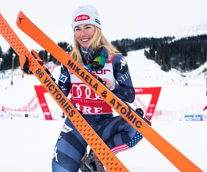 The day where Mikaela Shiffin matched the great Swedish legend Ingemar Stenmark’best mark of 86 World Cup victories on March 10, 2023 – Photo copyright @usskiteam