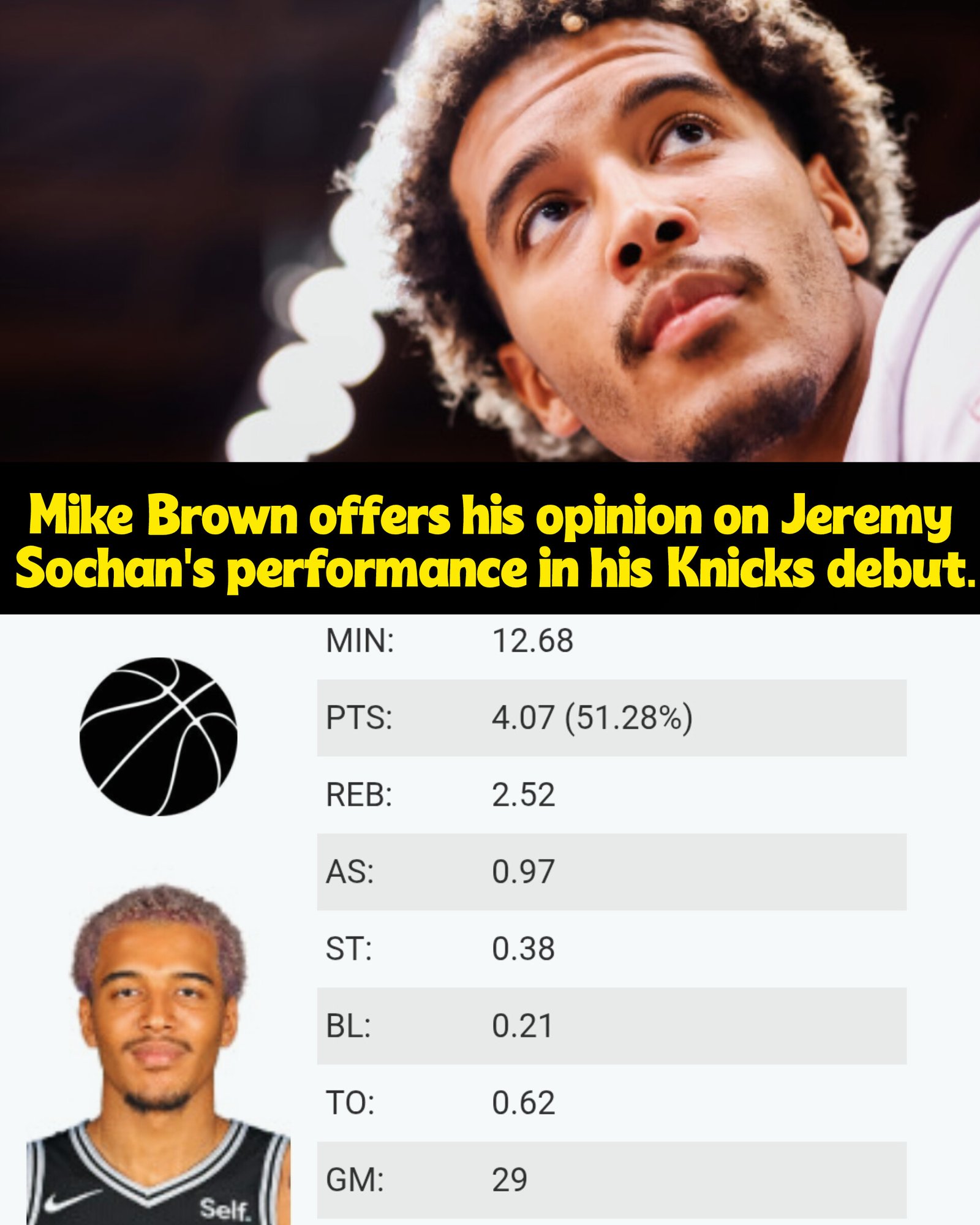 Mike Brown offered his early assessment of Jeremy Sochan following the forward’s first appearance with the New York Knicks.