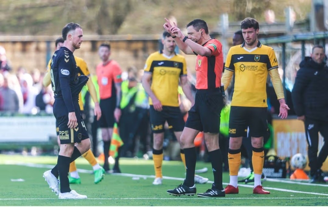 The flashpoint came during a Falkirk counterattack, with Calvin Miller driving forward from inside his own half and appearing to have space ahead of him. Meghoma, on loan from Brentford, stepped in to halt the run before it could fully develop. Despite the challenge potentially stopping a promising attack, referee Don Robertson opted to show only a yellow card.