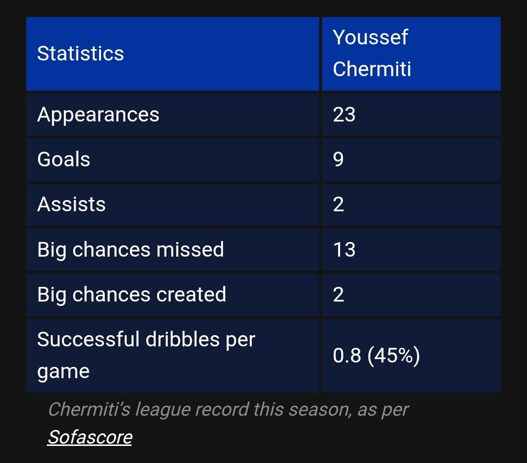 Over the course of the current campaign, his statistics reflect a mixed contribution. In 23 appearances, he has scored nine goals and provided two assists. However, he has also missed 13 big chances and created only two, while averaging fewer than one successful dribble per game. These numbers suggest inconsistency, particularly for a player brought in to lead the line.
