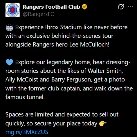 The post advertised a meet-and-greet experience involving Rangers players, seemingly intended as a way to lift spirits after the disappointing result. However, the reaction from supporters was overwhelmingly negative, with many expressing frustration that the club had not yet commented on the events that took place during and after the match.