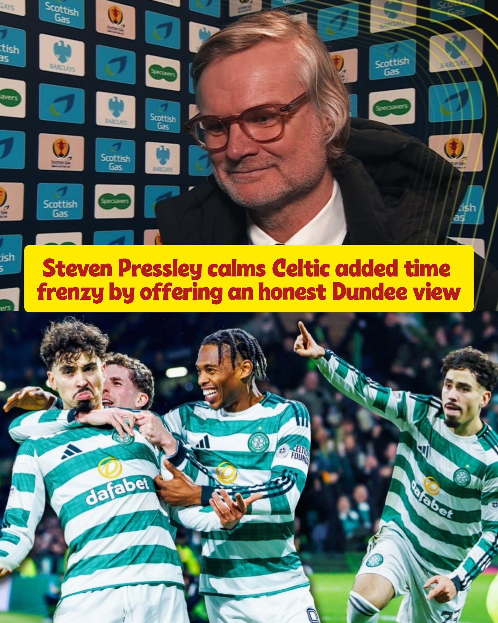 Steven Pressley has moved to calm the online outrage surrounding Celtic’s dramatic Scottish Cup victory over Dundee, offering a grounded and honest assessment of the controversial added time that allowed the Hoops to snatch an equaliser at the death.