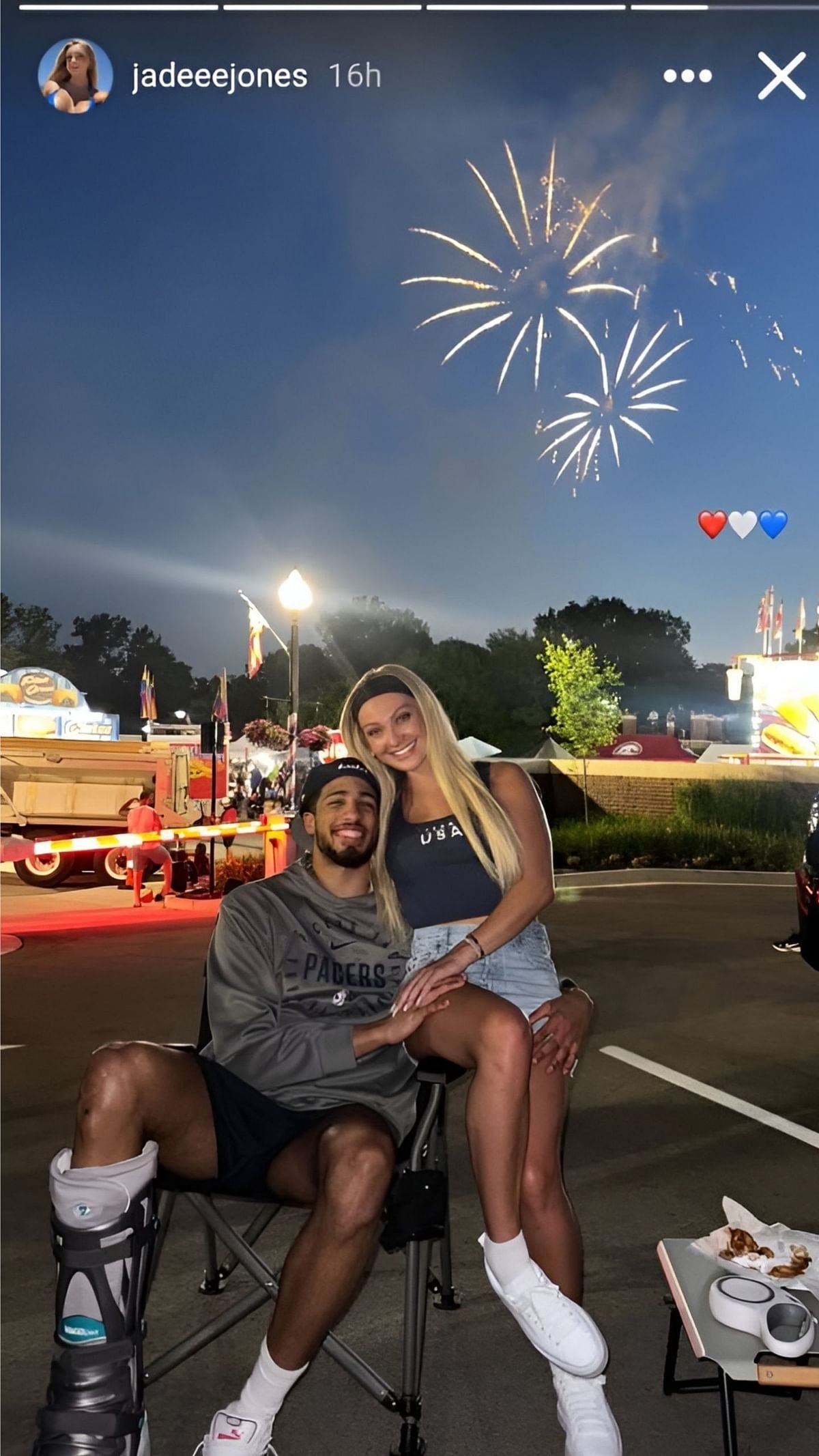 Tyrese Haliburton’s fiancée Jade Jones provides a glimpse into the Pacers star’s recuperation as they celebrate the Fourth of July