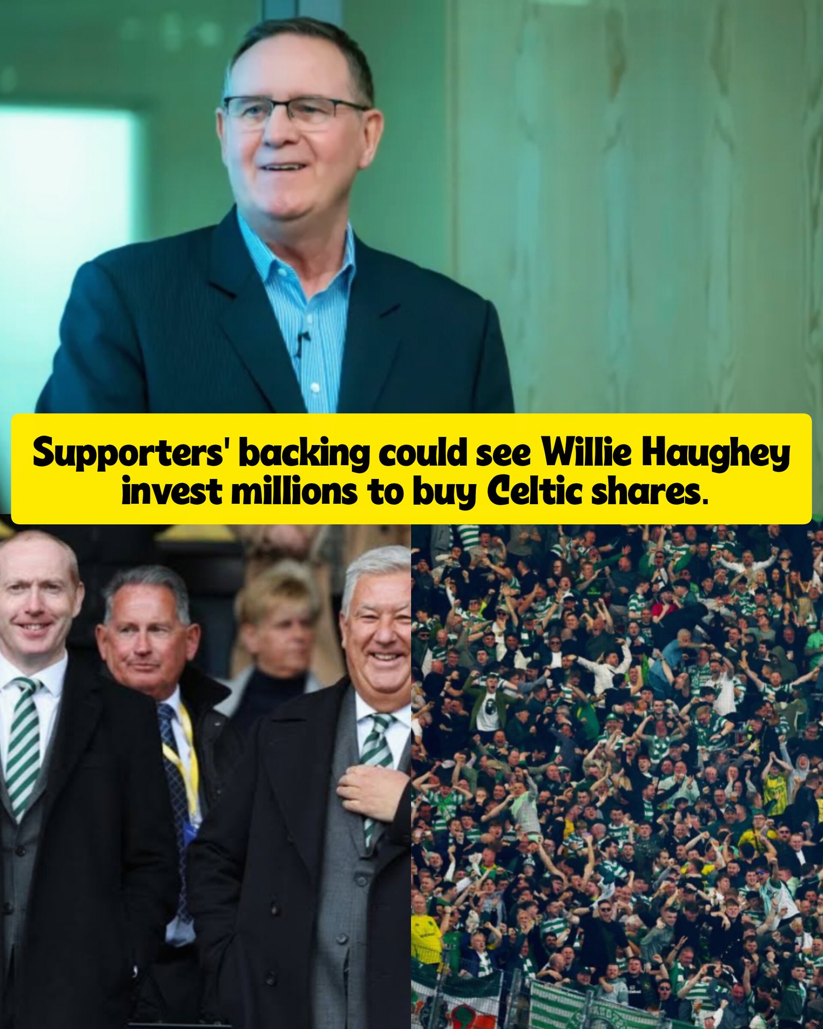 Willie Haughey promises millions to purchase Celtic shares if supported by fans.